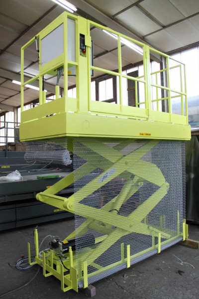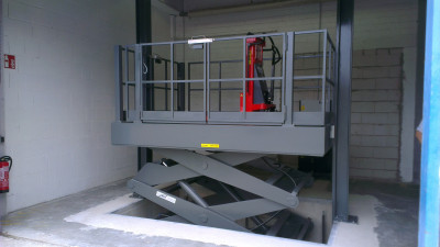 Doppelscheren-Hebebühne, eingesetzt zur Beschickung einer zweiten Ebene |