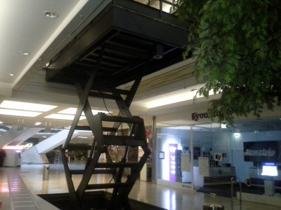 Doppelscheren-Hubtisch zur Beschickung einer zweiten Ebene in einem großen Einkaufszentrum |