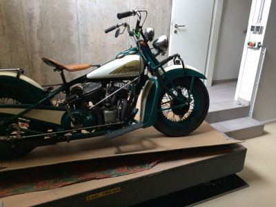Transport eines Motorrades vom KG ins EG in einem Privathaus. |